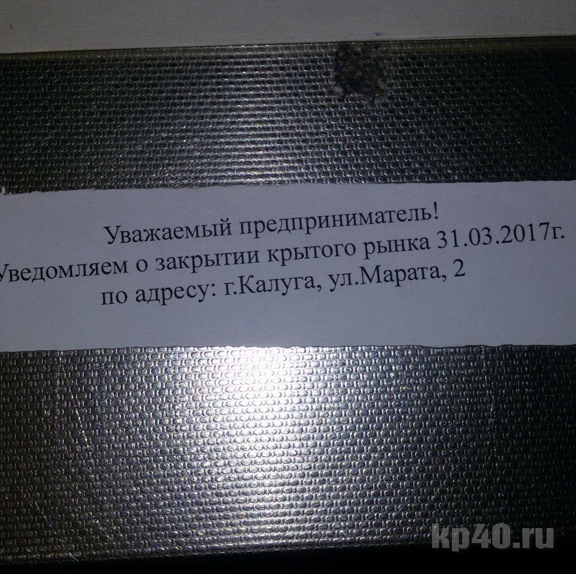 В среду, 15 марта, предпринимателям, работающим на Центральном рынке Калуги, выдали уведомления о закрытии купола с 31 марта.