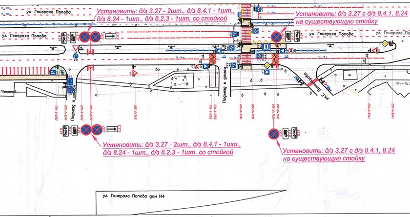 На дороге-дублере в районе дома №4 по улице Генерала Попова и на улице 65 лет Победы у детского сада «Мозаика» появятся запрещающие дорожные знаки «Остановка запрещена» с информационными табличками «Вид транспортного средства» и «Работает эвакуатор».