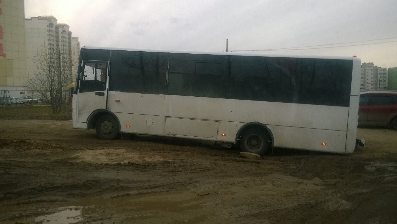 Вечером в среду, 29 марта, на Правом берегу в Калуге на выезде с Шопинской дороги застрял автобус. Он не смог проехать по ямам и застрял в одной из них.