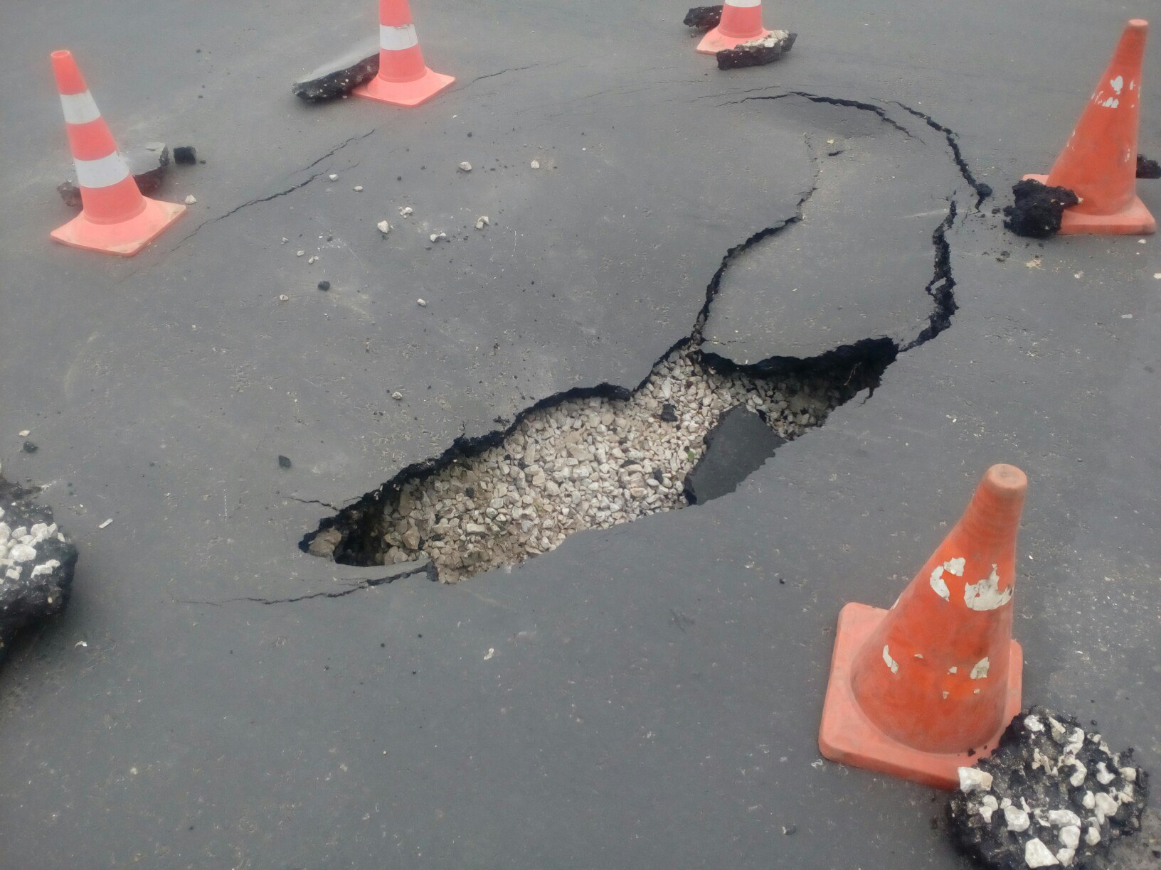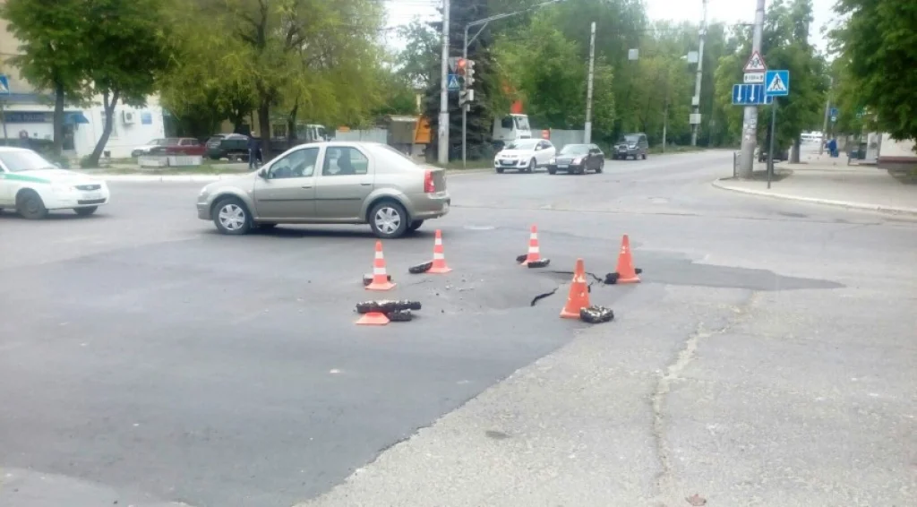 Асфальт провалился на перекрёстке Московской и Карла Либкнехта