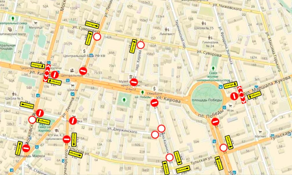 - по улице Кирова (от пл. Победы до ул. Московской);