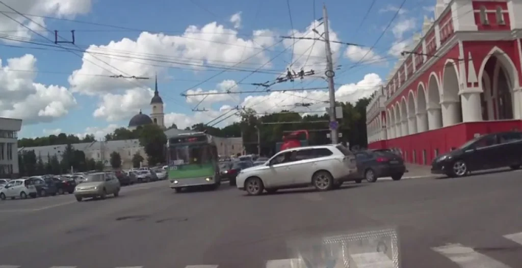 Днём во вторник, 27 июня, на площади Старый Торг водитель «Мицубиси» не смог разъехаться с троллейбусом. Видео калужанина Михаила Павлова выложили в группе «Калуга жесть».