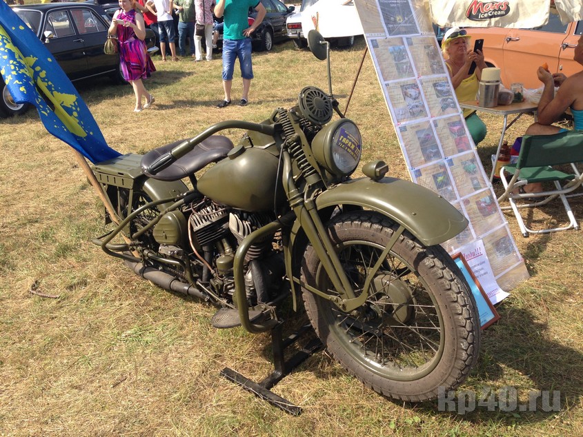 Мотоцикл Harley-Davidson WLA-42 1942 года. Максимальная скорость - 99 км/ч. Все детали - родные. Его владелец Сергей БОГАТЫРЕНКО давно собирает ретро-автомобили. У него есть все старые модели «Волги», а также «Москвичи», «Инвалидки», как в фильме «Операция Ы», «Запорожцы», «полуторка», которая снималась во многих фильмах.