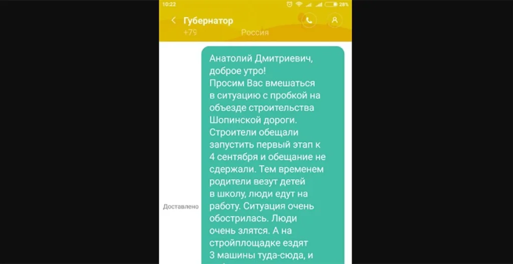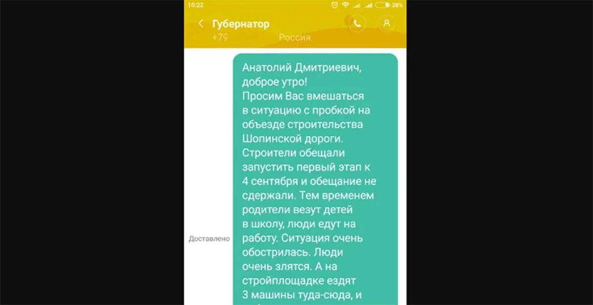 Во вторник, 5 сентября, председатель ТОС «Правгород» Сергей Титов поставил в известность губернатора Анатолия Артамонова о том, что строители не выполняют данных обещаний. Титов сделал это, отправив SMS-сообщение на мобильный телефон главы региона. Он также попросил Артамонова вмешаться в ситуацию.