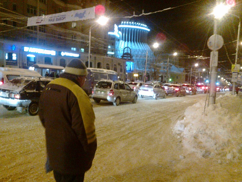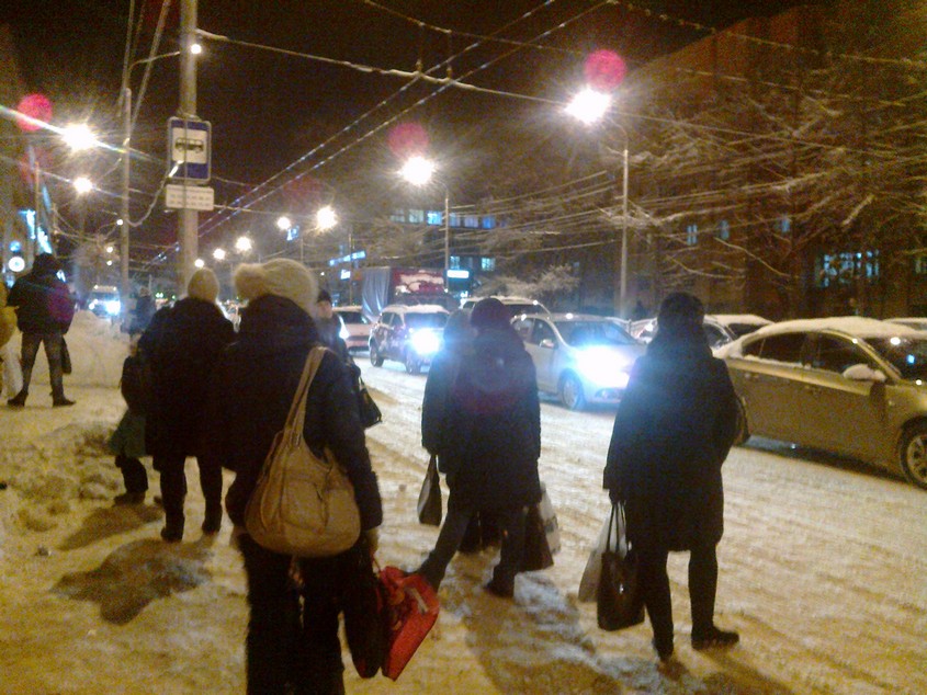 Вопреки моим ожиданиям, через полтора часа меньше он не стал. Я немного подождала маршрутку на остановке возле «21 века». Потом прикинула, сколько она будет ехать до 6-й школы, и отправилась туда в надежде, что так я доберусь до дома быстрее. Однако расчёт оказался неверным: сквер Мира, улица Гагарина были полностью забиты транспортом, который стоял на месте и не двигался. Совсем.