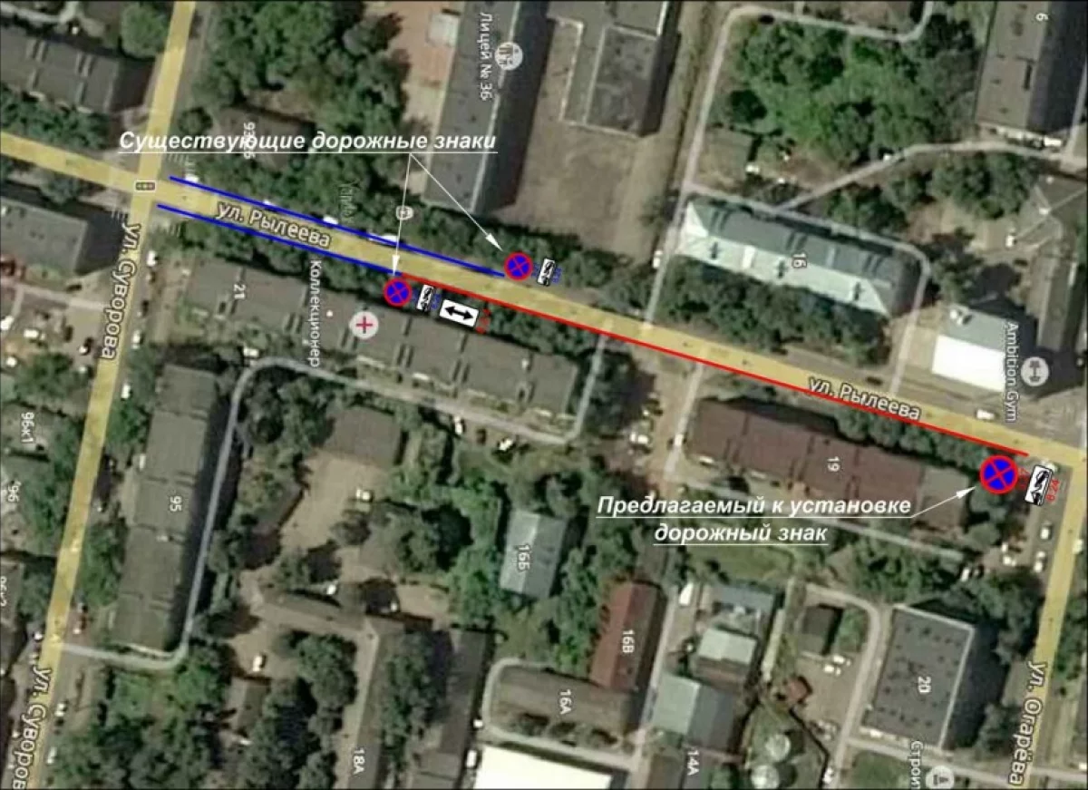 На нечётной стороне улицы Рылеева – от улицы Суворова до улицы Огарёва – запретили остановку.