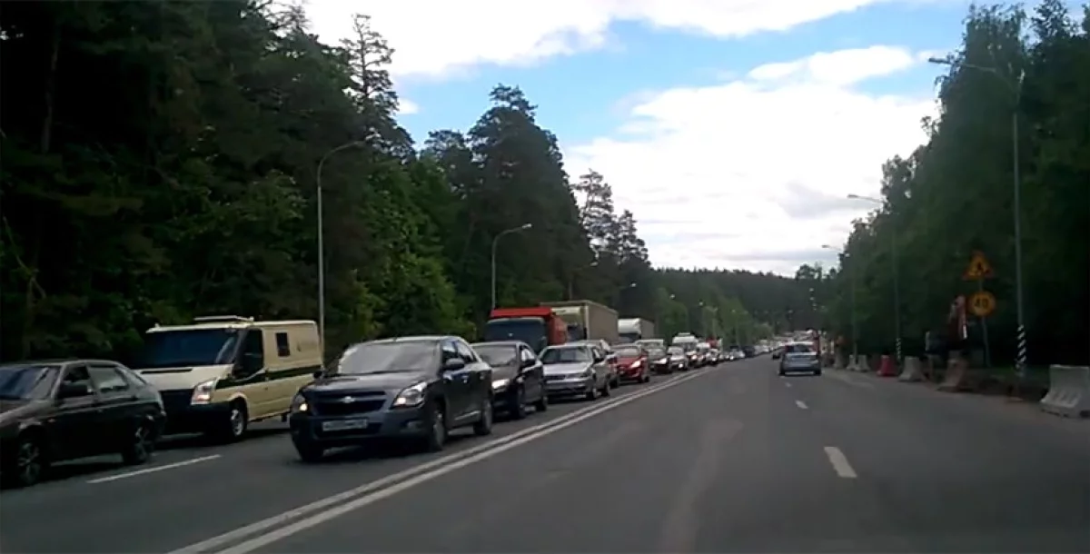 Перекрытие полос заставило многих автомобилистов по часу выбираться из города на участке между дамбой и Мстихино.