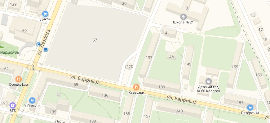 Как мы уже рассказывали, в рамках строительства Дворца спорта в Калуге несколько изменится улица Веры Андриановой. Она вскоре не будет огибать коттедж (ул. Баррикад 137б), а пройдёт ближе к многоэтажке (ул. Баррикад, 137).