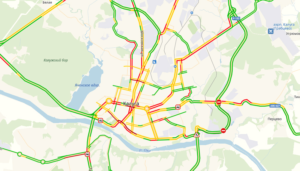 По состоянию на 9 утра заторы наблюдаются на улицах Кирова, Московской, Ленина, Жукова, Набережной, Кутузова, Королева, Пушкина, Плеханова, Генерала Попова, Карла Либкнехта, Телевизионной и других. Традиционно также наблюдается пробка на Синих Мостах.