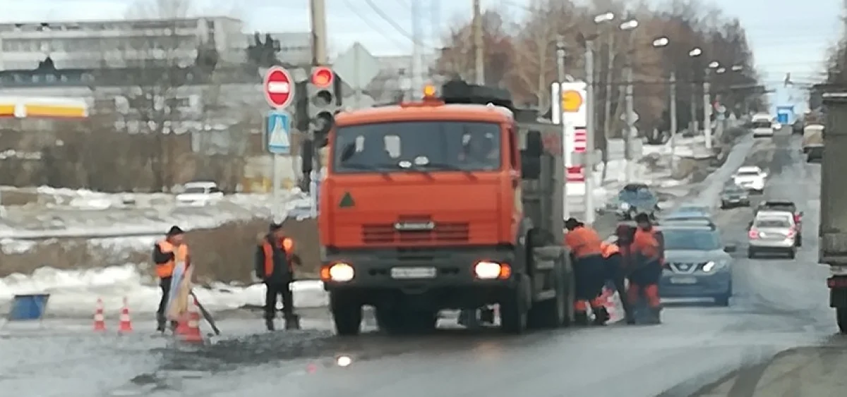 В среду, 27 февраля, дорожники ведут ямочный ремонт на Грабцевском шоссе в районе перекрёстка с улицей Зерновой.