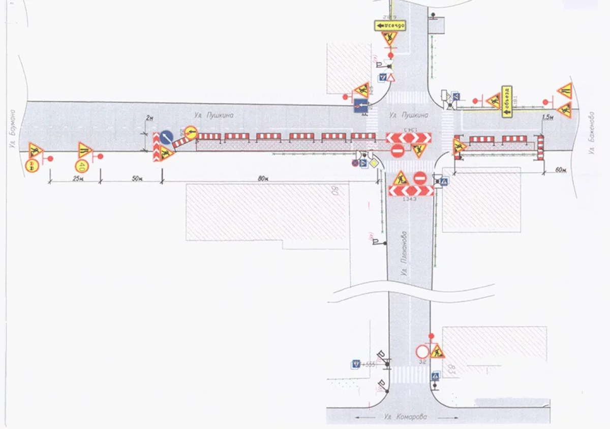 Из-за этого движение на перекрёстке будет ограничено. Улица Плеханова будет перекрыта, а на Пушкина временно сузят проезжую часть. Схему перекрытия (см. на фото выше – прим. ред.) утвердили в пятницу на комиссии по безопасности дорожного движения, сообщает городская управа.