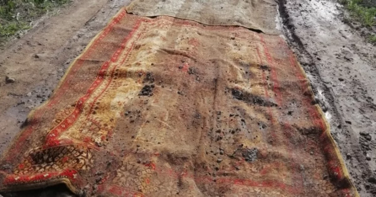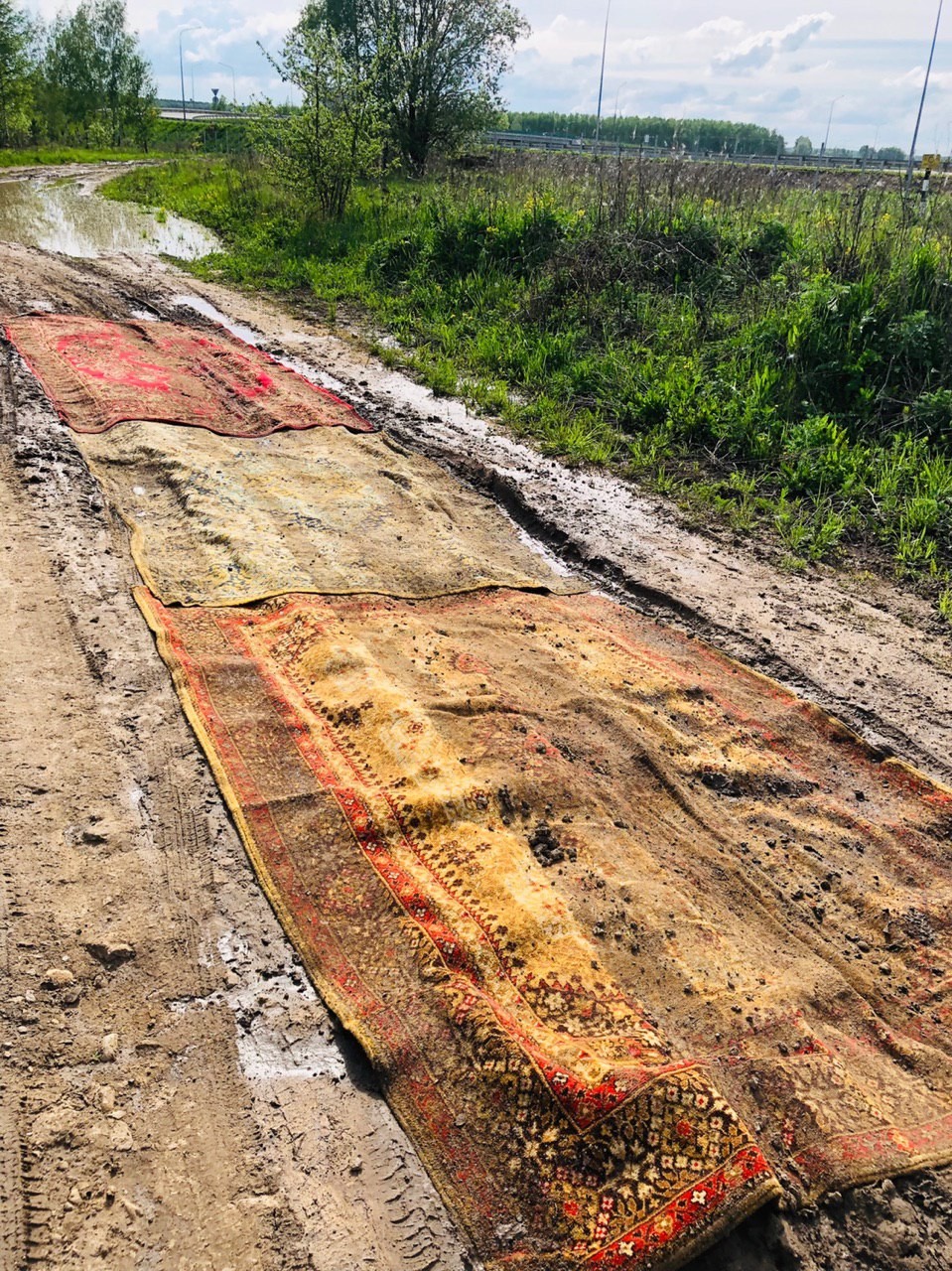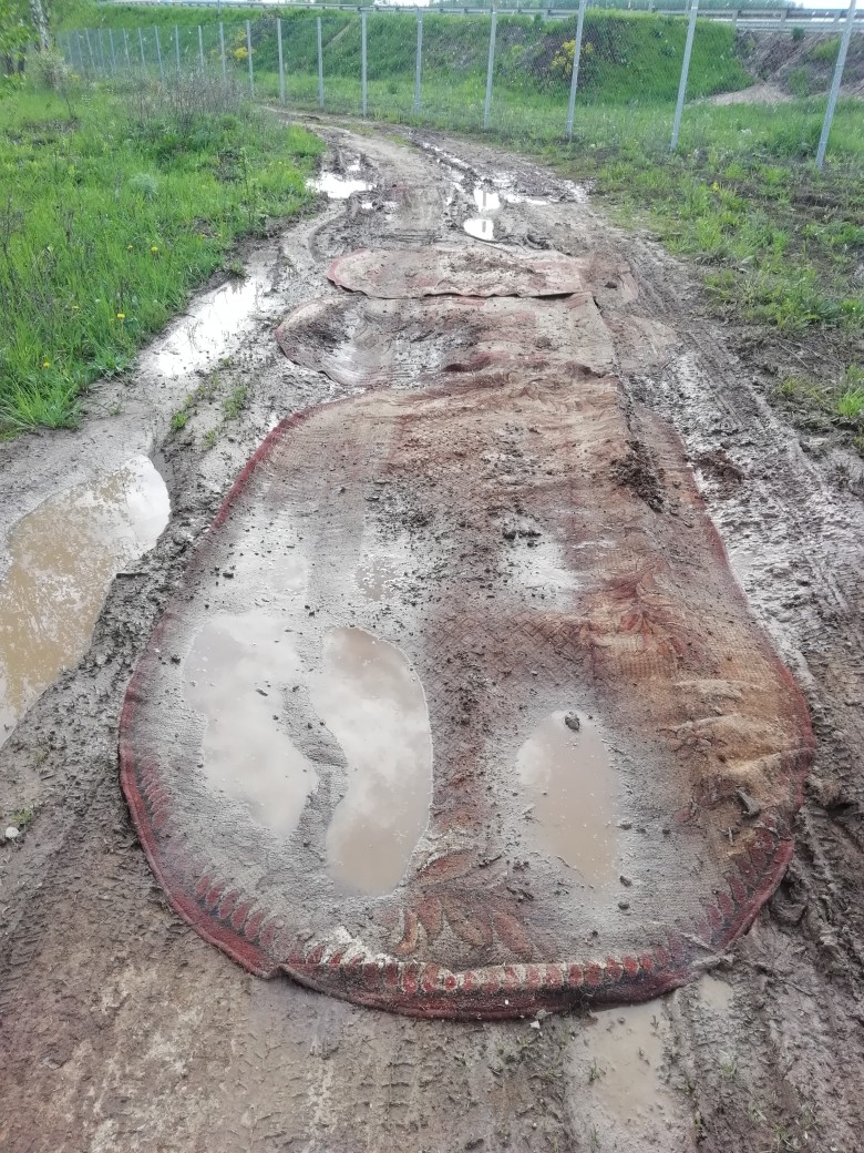 Водители оценили смекалку местных жителей. Но, увы, местами ковры уже скатались, добавив дороге ещё больше неровностей.
