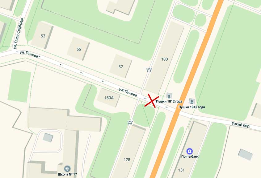 Примерное место перекрытия движения по улице Пухова.