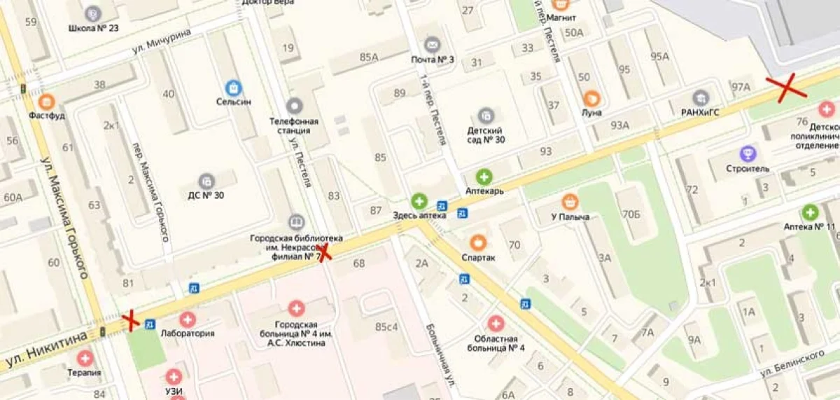 - В пятницу, 21 июня, с 23.00 до 6:00 будет закрыт проезд по улице Никитина - по участку, ограниченному улицами Максима Горького и Пестеля.