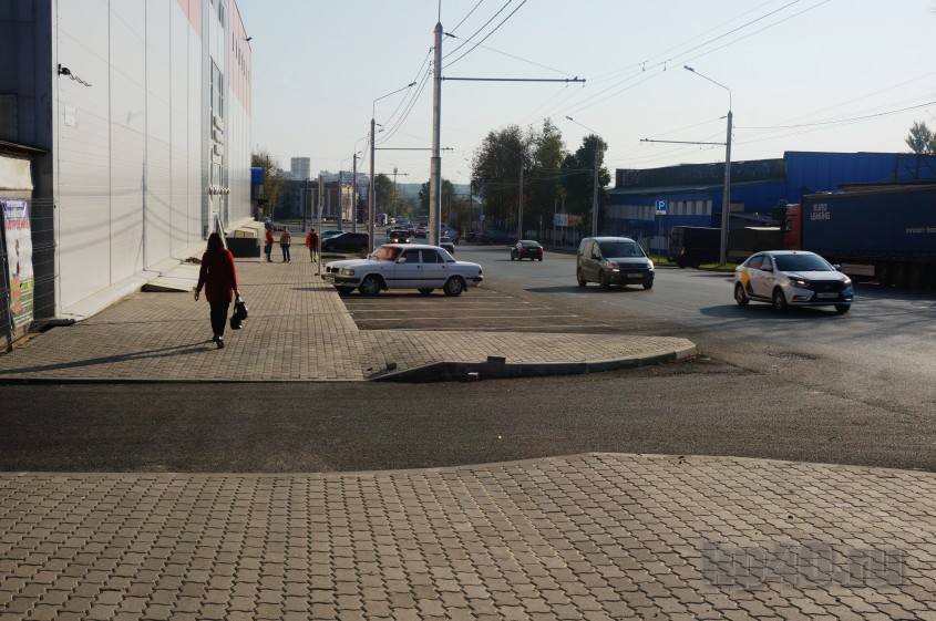 Тротуары появились вдоль заправки и рядом с торговым центром. Раньше людям приходилось идти по дороге.