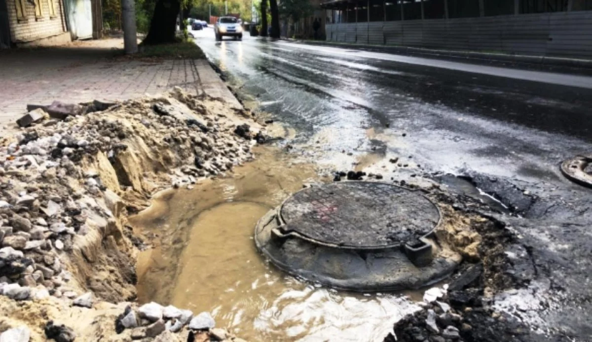 Тридцатью метрами ниже обнаружили еще один протекающий люк, на этот раз – водопроводный. Предположительно, тяжелая асфальтоукладочная техника продавила железную конструкцию, и произошел прорыв трубопровода.