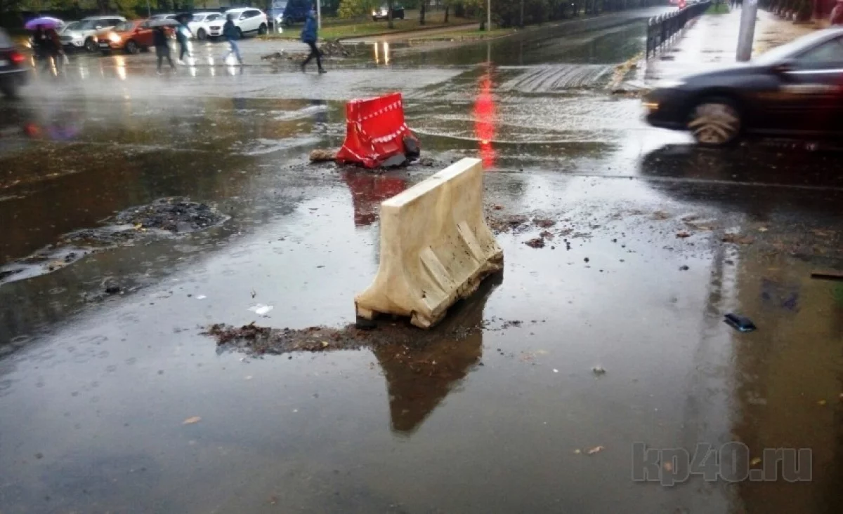 Внезапный октябрьский дождь заметно осложнил ситуацию на разрытых калужских улицах.