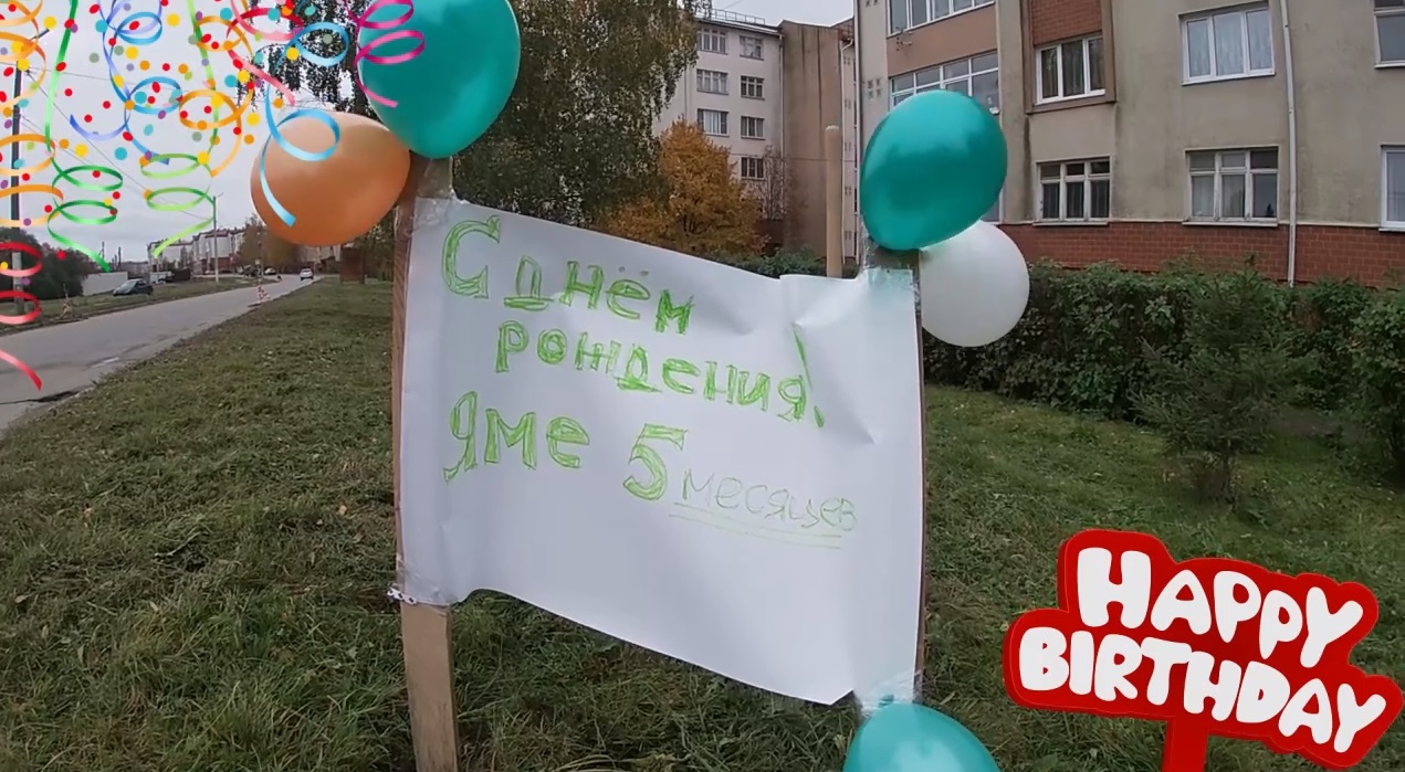 Как утверждает автор, яме исполнилось ровно пять месяцев. В честь этого знаменательного события молодой человек нарисовал плакат и под соответствующую музыку зачитал поздравления, пожелав яме поскорее исчезнуть.