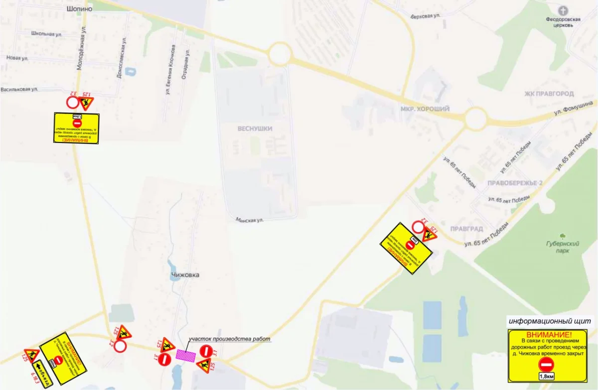 - Будет закрыто движение для всех транспортных средств на участке от улицы 65 лет Победы до автомобильной дороги «Правый берег – Шопино» и на участке от поворота на Южный обход до поворота на улицу Озерную деревни Чижовка, - рассказали нам в пятницу в городской управе.
