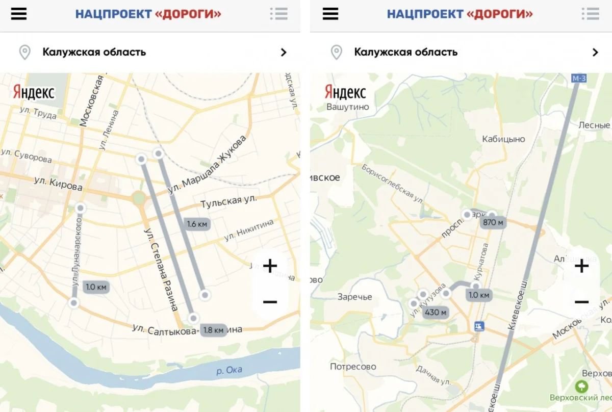 При содействии Министерства цифрового развития, связи и массовых коммуникаций Российской Федерации разработано мобильное приложение «Госуслуги. Дороги». Программный продукт позволяет оценить качество дорожных работ в каждом регионе, в том числе и в Калужской области. Приложение позволяет получить сведения о подрядчике, запланированных работах и сроках их выполнения.