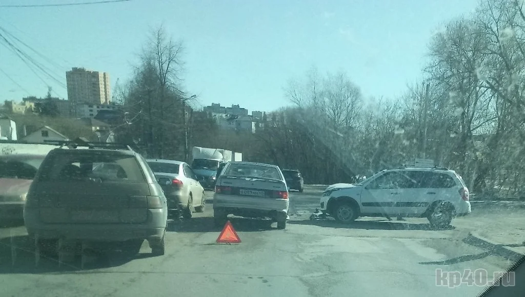 А около 11:00 ситуацию на Советской осложнило ДТП в районе поворота на турбинный завод. Фото прислала подписчица «Калужского перекрёстка» в социальной сети «ВКонтакте» Катерина Бочкова.