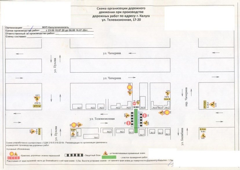 Схема перекрытия улицы Телевизионной в Калуге 15 июля 2020 года.