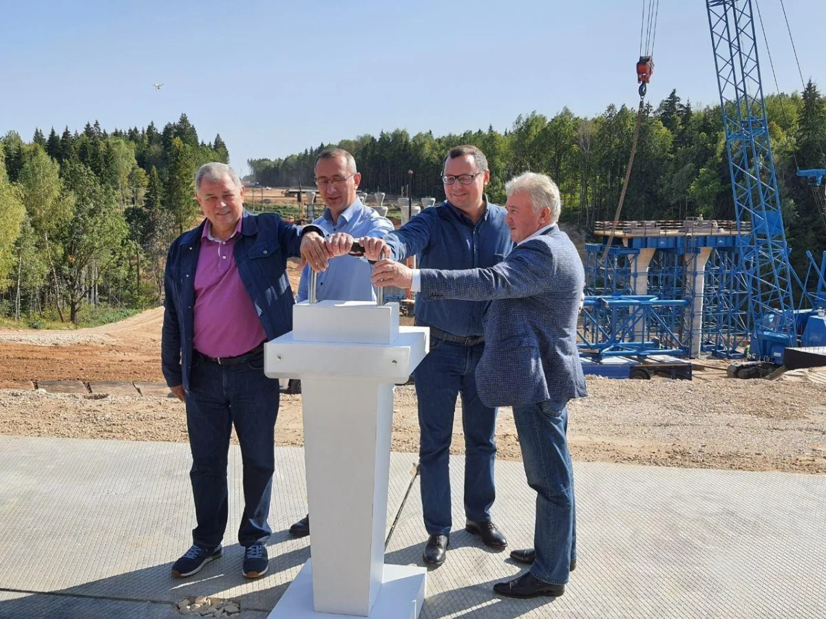 Андрей Костюк и Владислав Шапша стали участниками торжественной церемонии старта начала работ по надвижке пролетного строения путепровода через Московскую железную дорогу и реку Каменка.