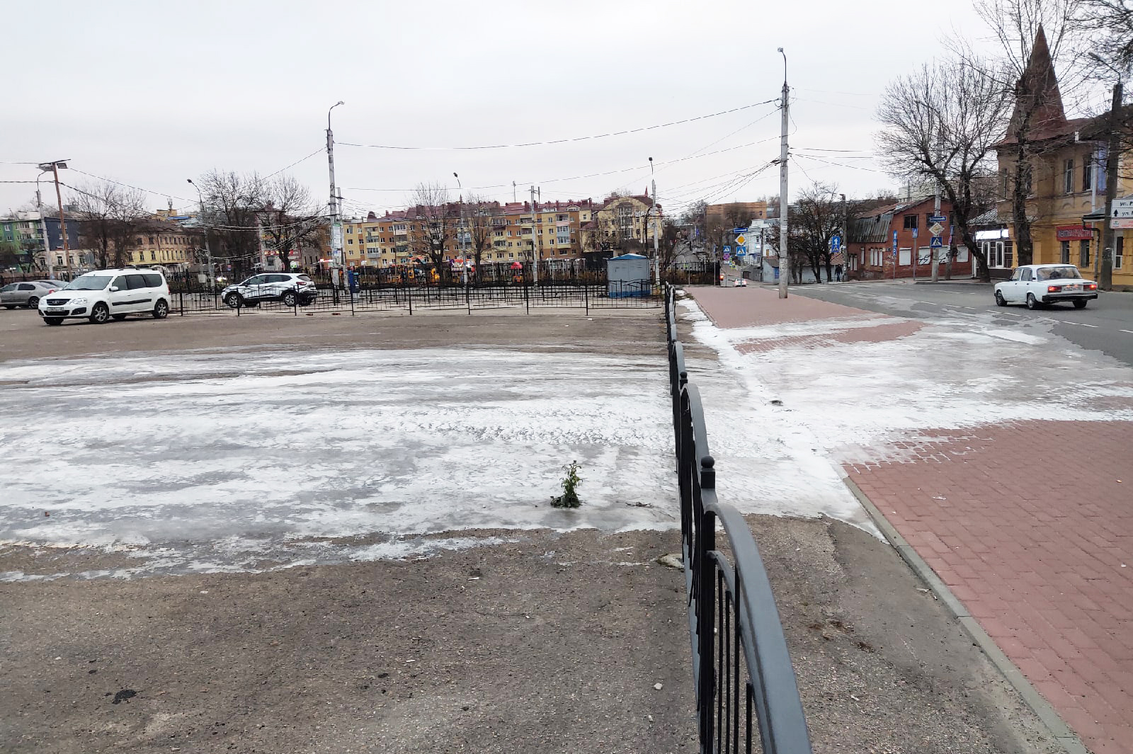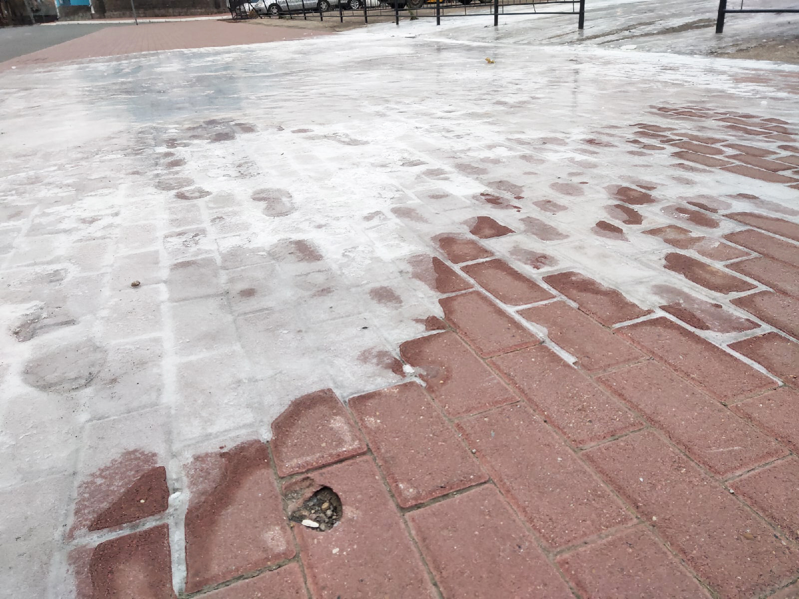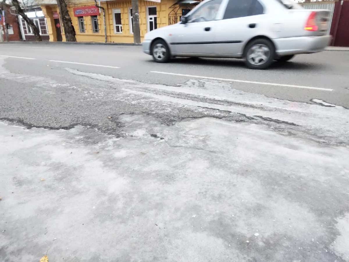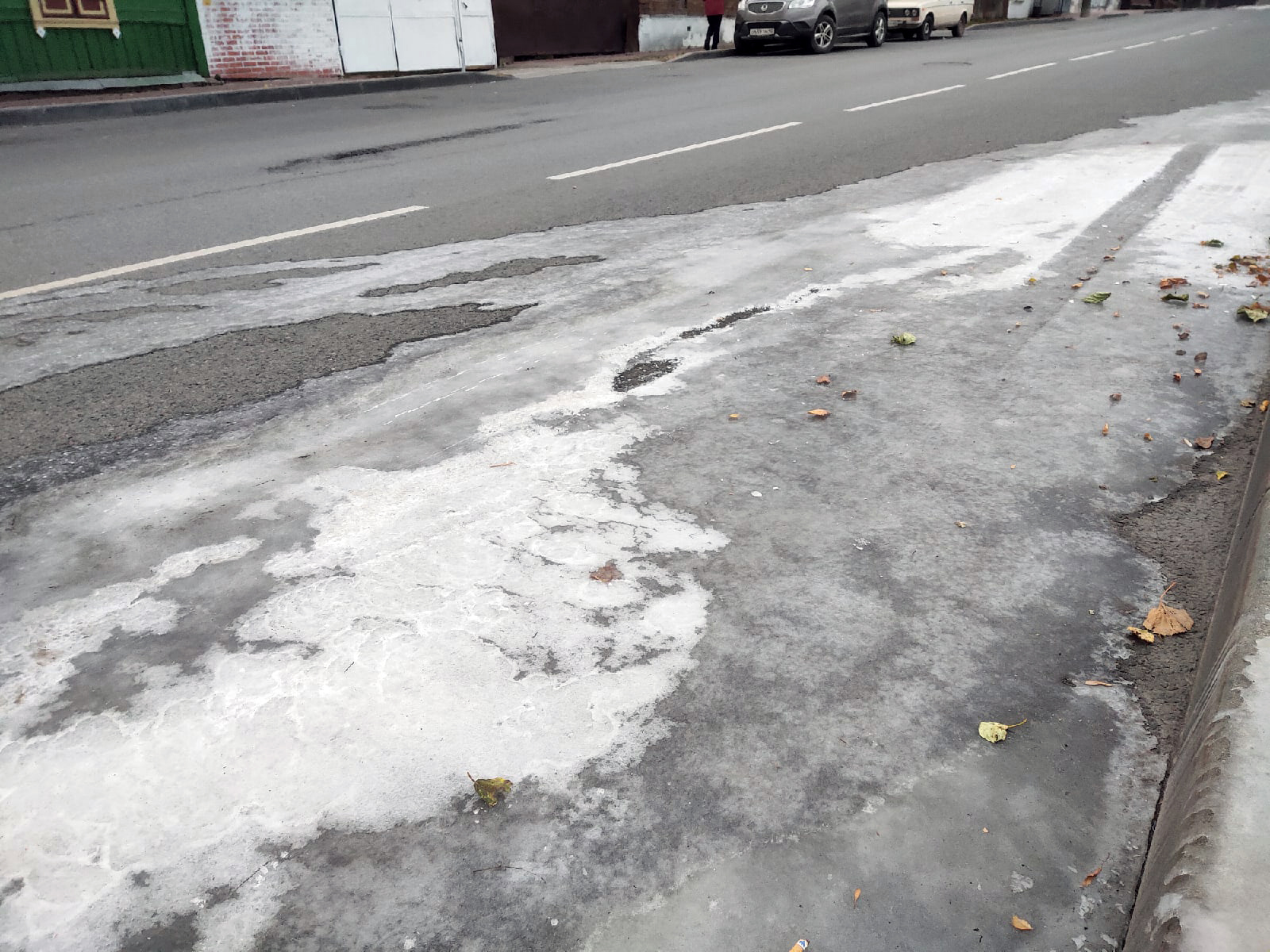 Утро 18 ноября 2020 года. Лед на парковке, тротуаре и проезжей части.