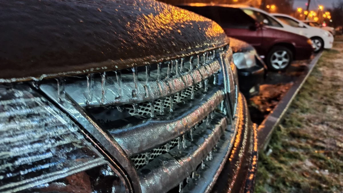 Из-за минусовой температуры припаркованные на улицах машины покрылись толстым слоем льда. Ледяной коркой затянуло тротуары и дороги. Дворники, естественно, засыпали их песчано-соляной смесью далеко не везде.
