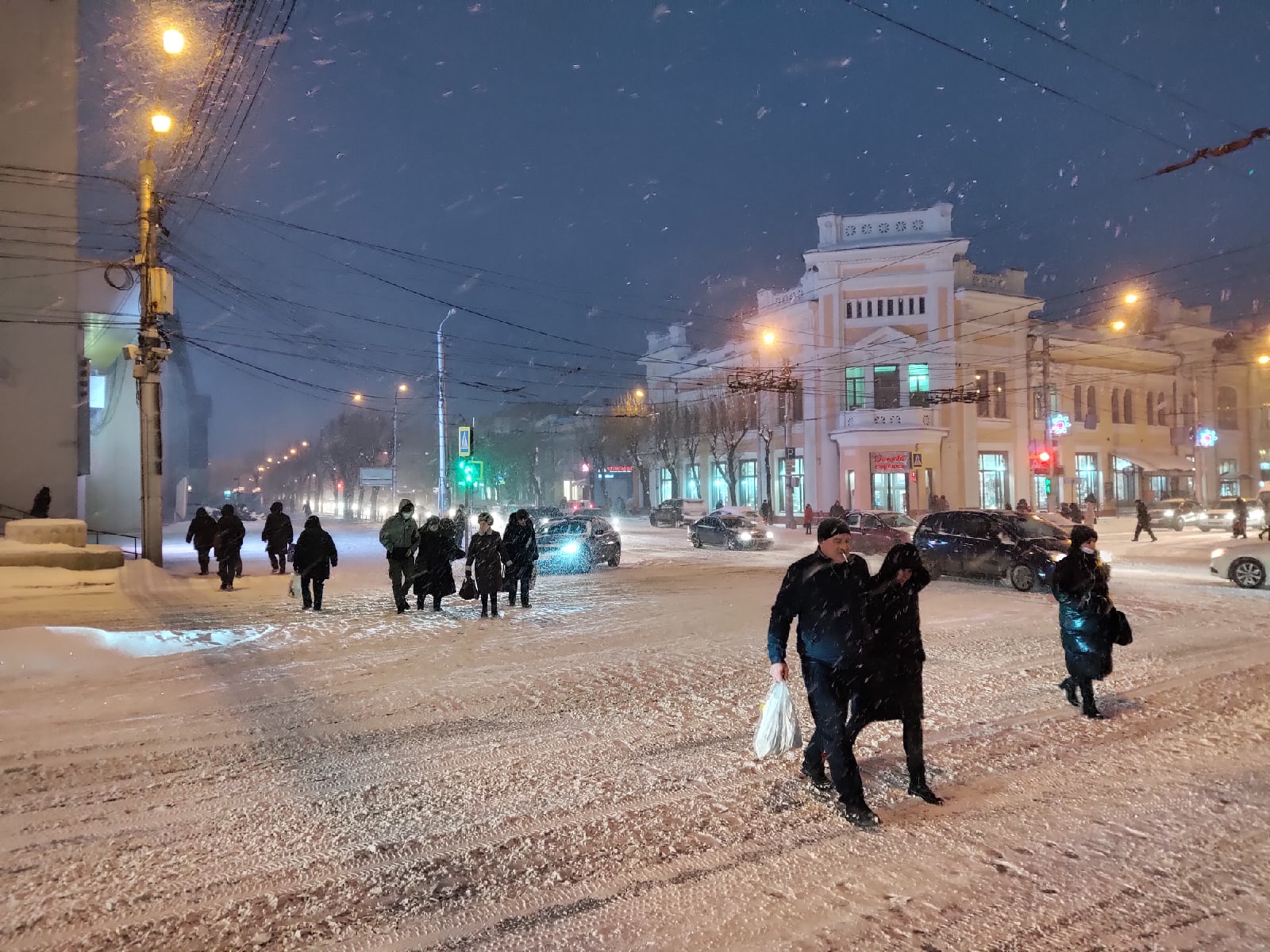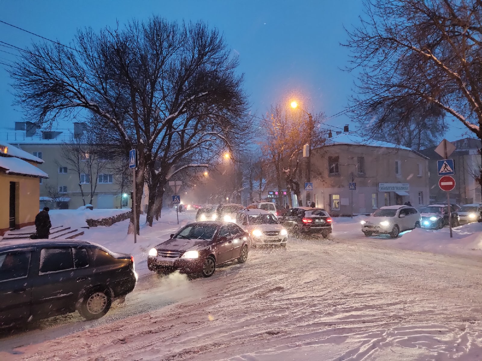 Вечером во вторник, 9 февраля, из-за сильного снегопада в Калуге затруднено движение по всему городу.