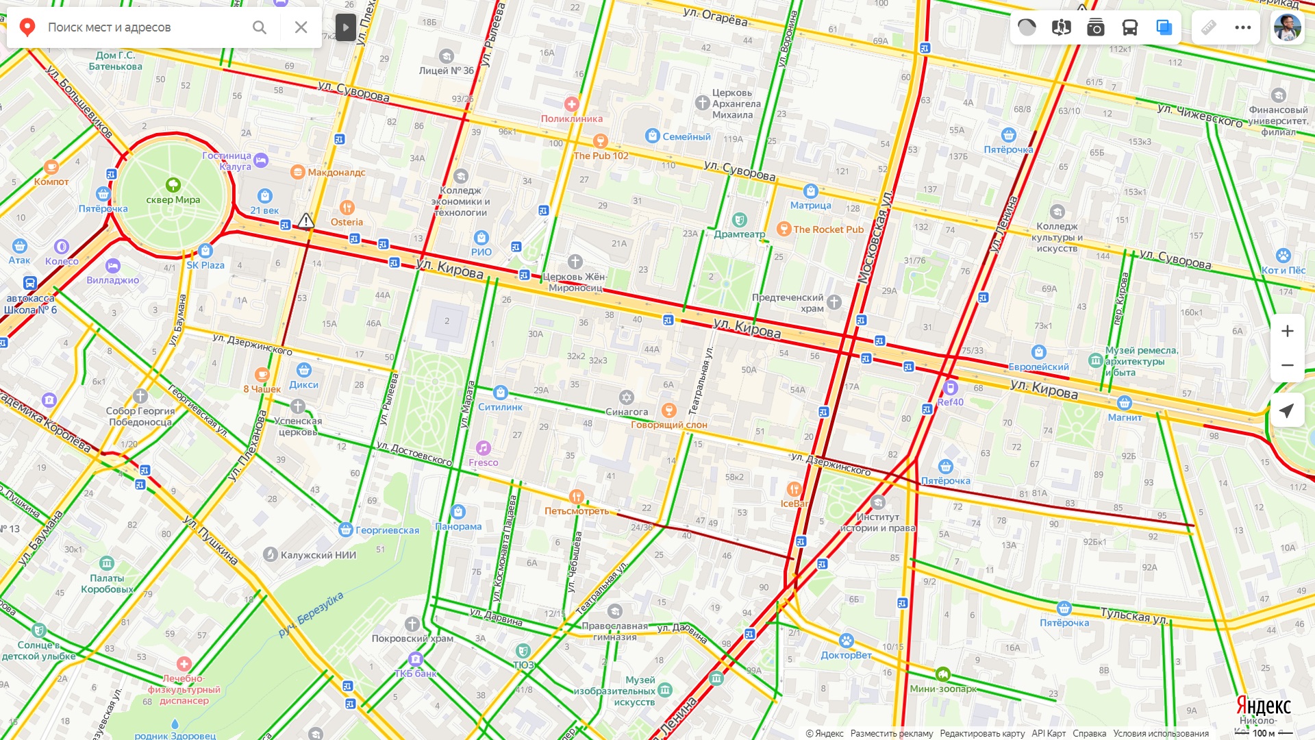 Дорожная обстановка в центре Калуги вечером 9 февраля.