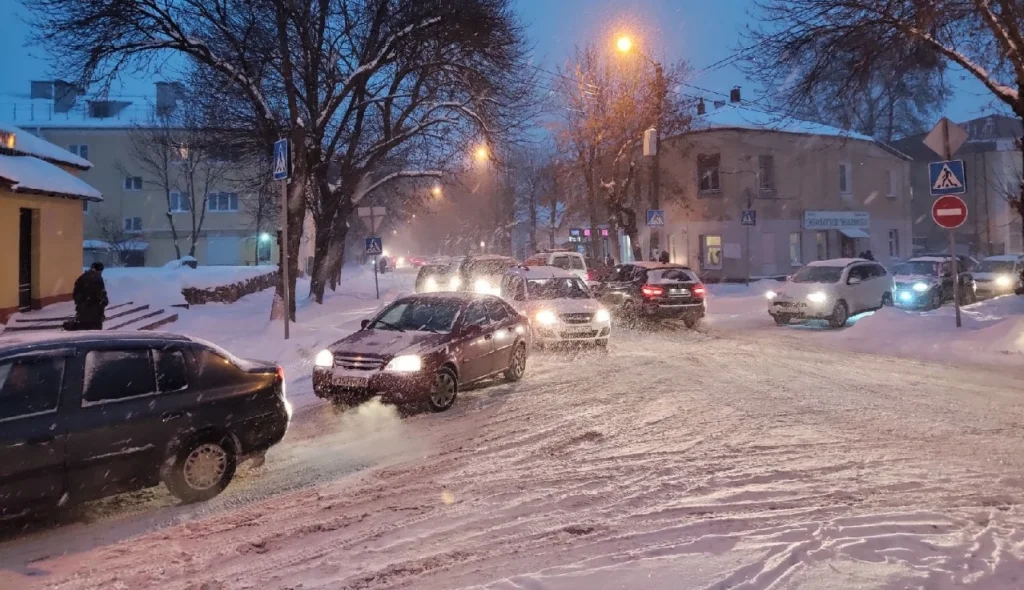 Огромные пробки образовались в Калуге из-за сильного снегопада