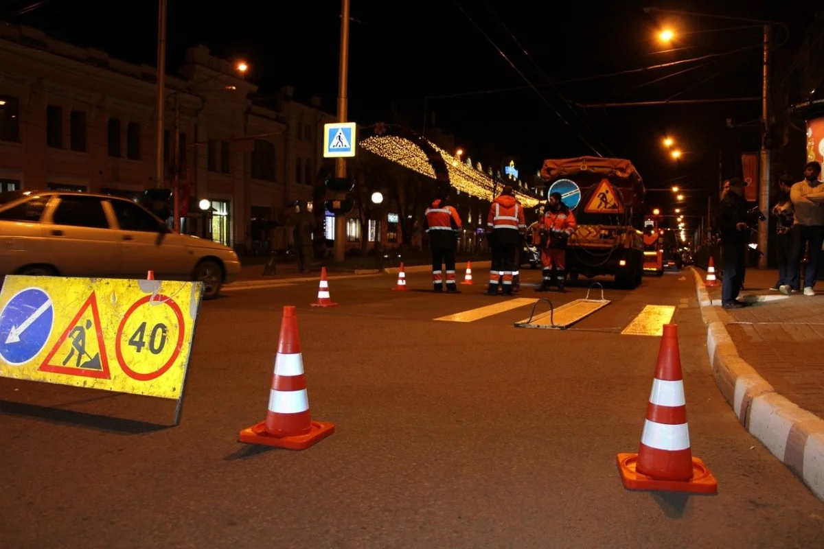 Улицу Кирова тоже пообещали разметить в июле. Пока что разметку нанесли краской. Процесс работы ночью проконтролировал городской голова Дмитрий ДЕНИСОВ.