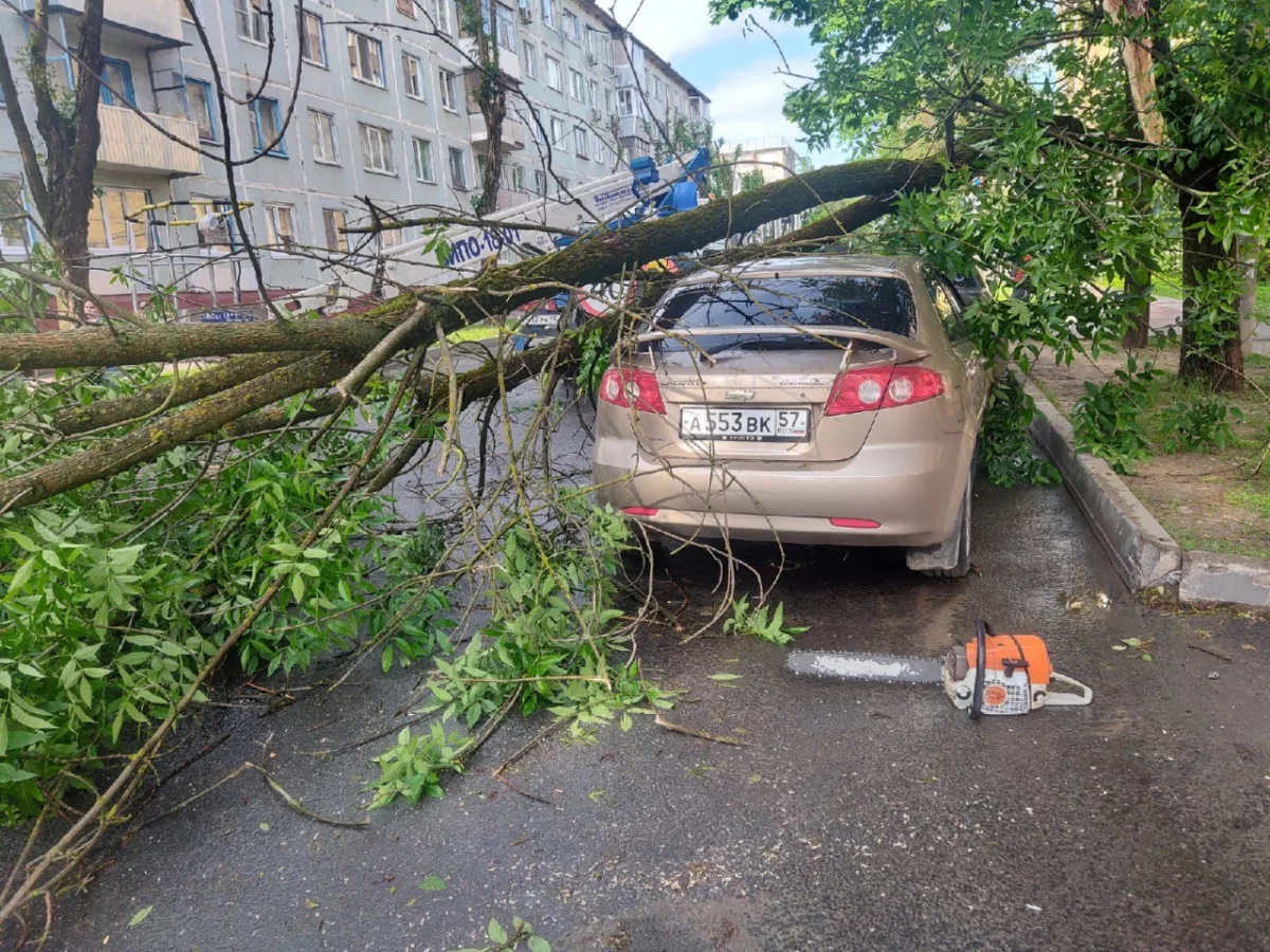 Днем во вторник, 8 июня, на улице Тульской в Калуге во время грозы упало дерево. Ветка попала на припаркованный у края проезжей части легковой автомобиль «Шевроле» с номерами Орловской области.