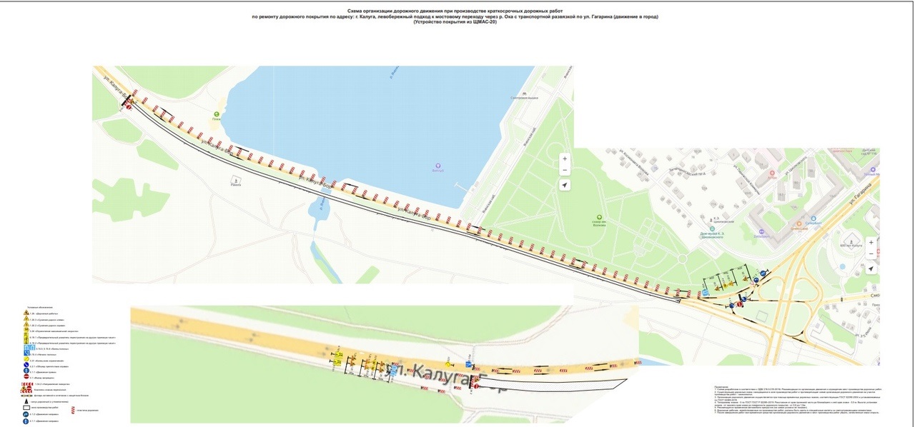 Перекрытие в Калуге на левобережном подходе к мосту через Оку с 22:00 часов 24 июня до 22:00 часов 25 июня.