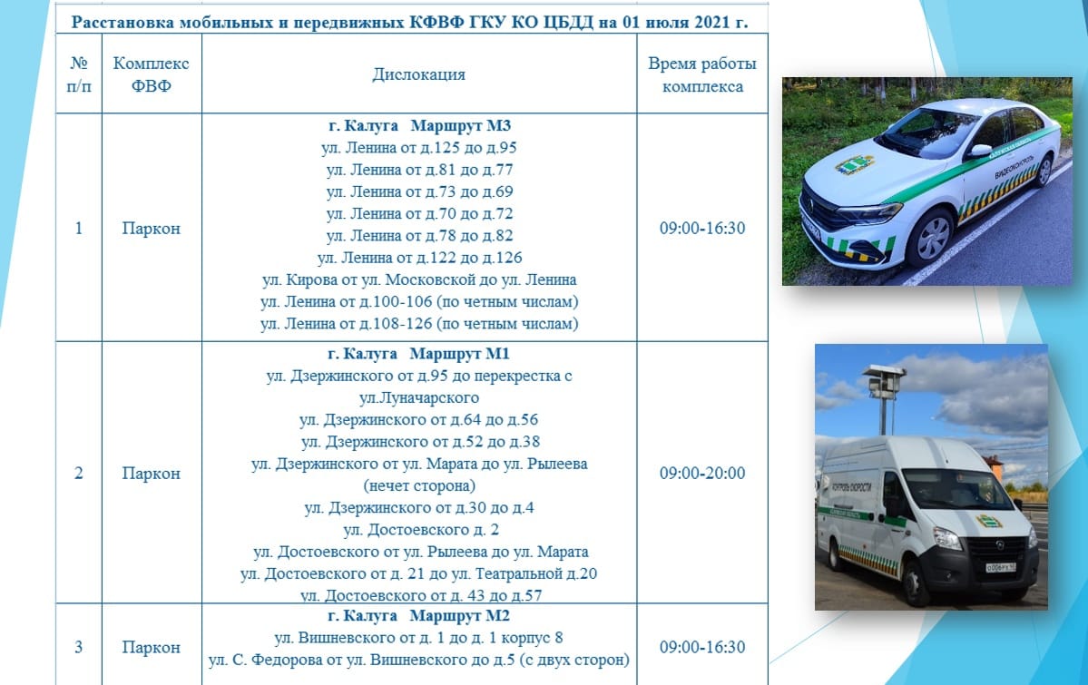 Расстановка мобильных камер на сегодня в Калуге и области.