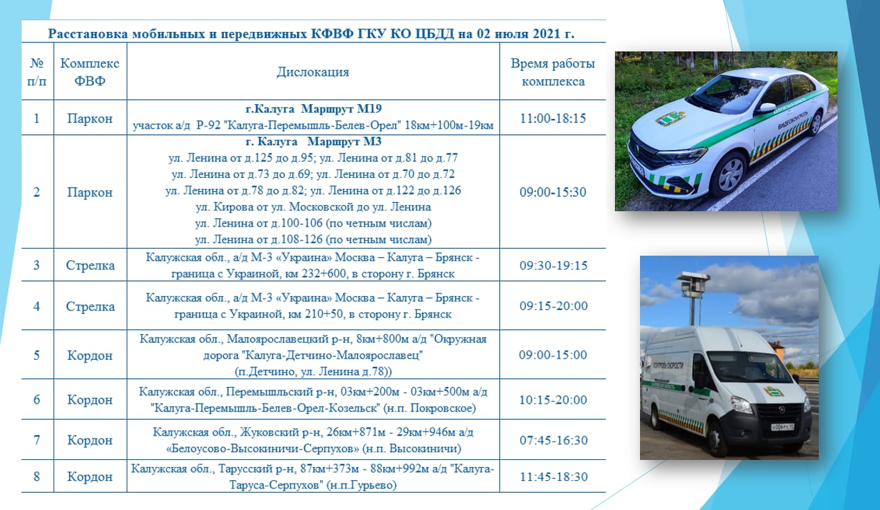 В области видео и фото фиксация проходит на трассе М-3 «Украина», в Малоярославецком, Тарусском, Перемышльском и Жуковском районах.