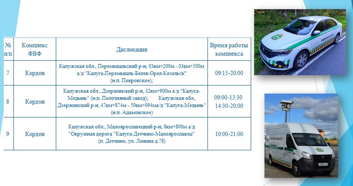 В области видео и фото фиксация проходит на трассе М-3 «Украина», в Малоярославецком, Бабынинском, Дзержинском, Жуковском, Перемышльском и Козельском районах.