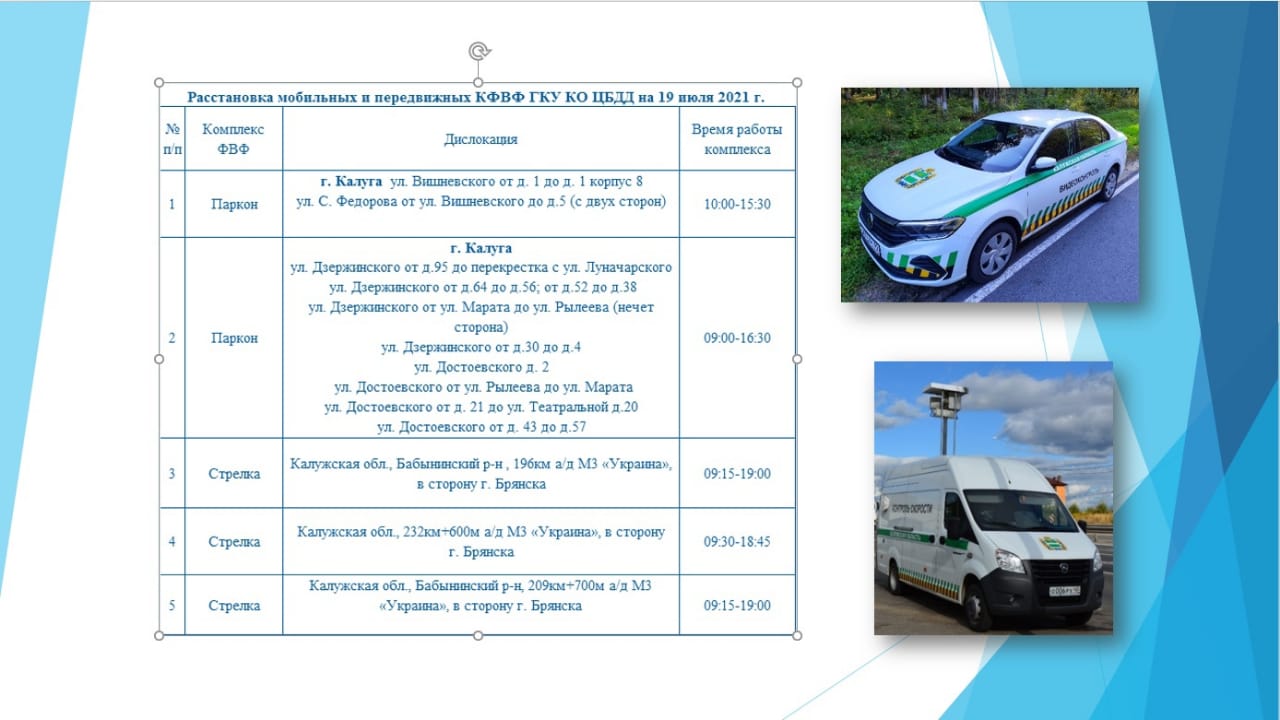 Расстановка мобильных камер на сегодня в Калуге и области.