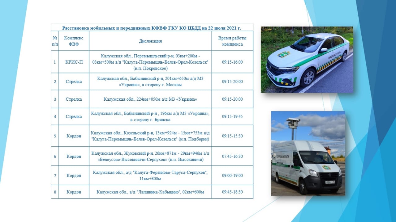 Расстановка мобильных камер на сегодня в Калуге и области.