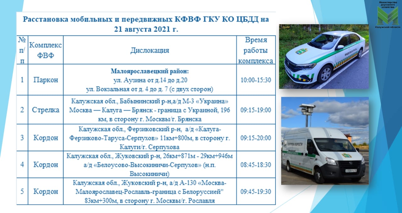Расстановка мобильных камер на сегодня в Калуге и области.