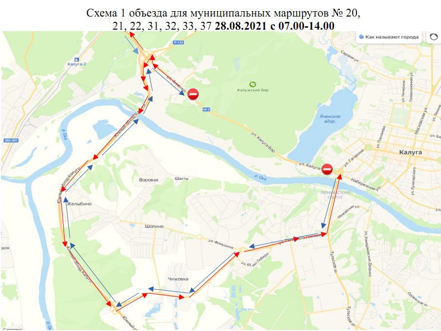 - с 7:00 до 14:00 муниципальные автобусные маршруты №№ 20, 20л, 21л,22, 22л, 30, 31, 32, 33л, 37л, осуществляющие движение по ул. Калуга-Бор (от ул. Гагарина до автодороги «Москва-Бобруйск»), будут осуществлять движение через Южный обход.