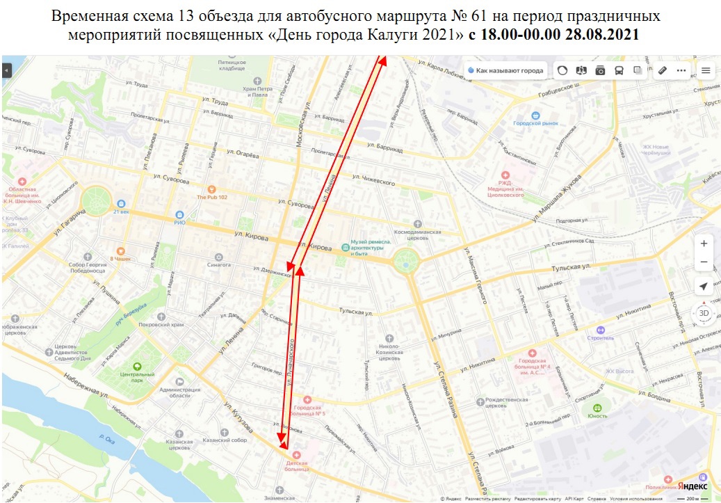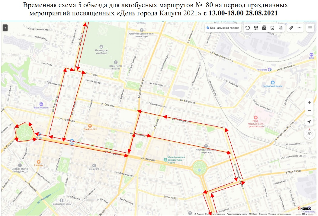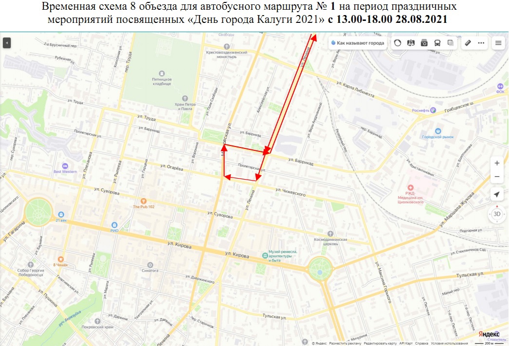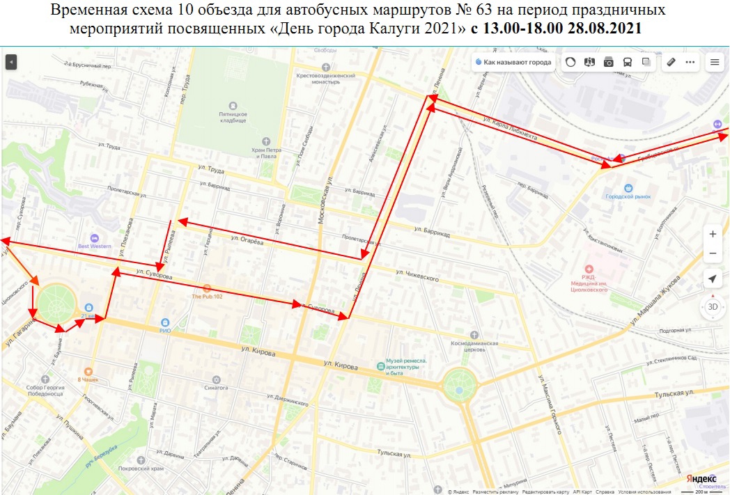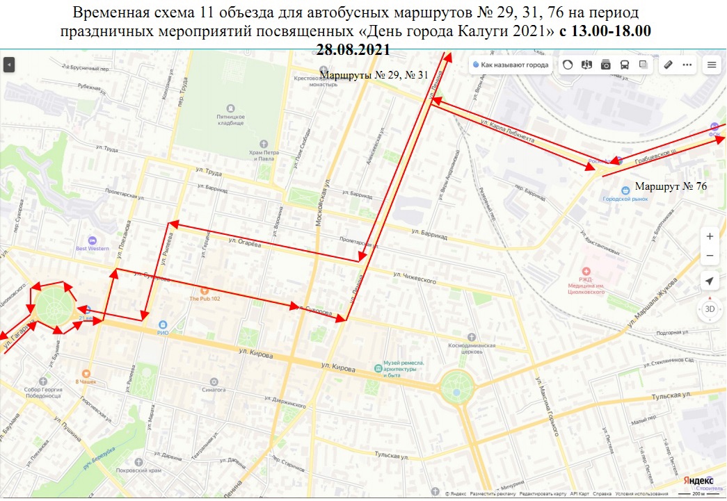Также опубликованы схемы изменныненых маршрутов общественного тарнспорта Калуги на День города:
