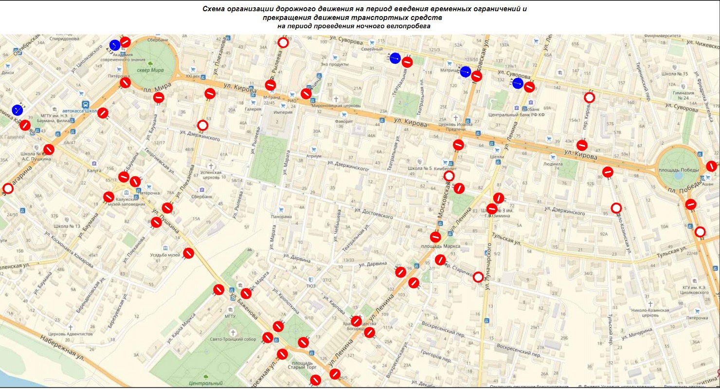 Схемы перекрытия улиц Калуги на День города.