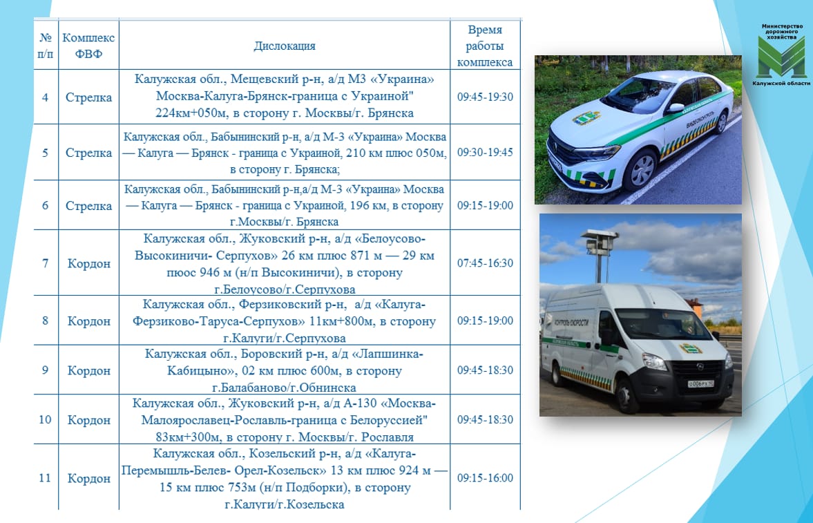 Опубликованы места установки мобильных дорожных камер в Калужской области 31 августа