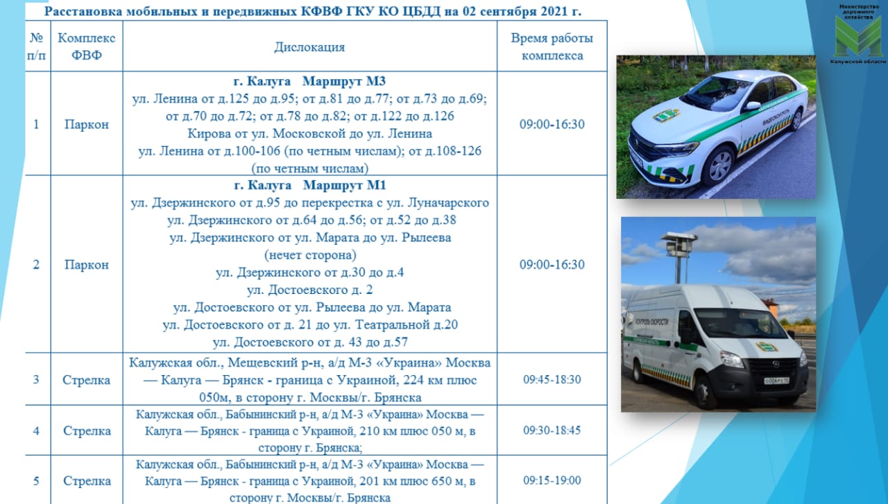 Расстановка мобильных камер на сегодня в Калуге и области.