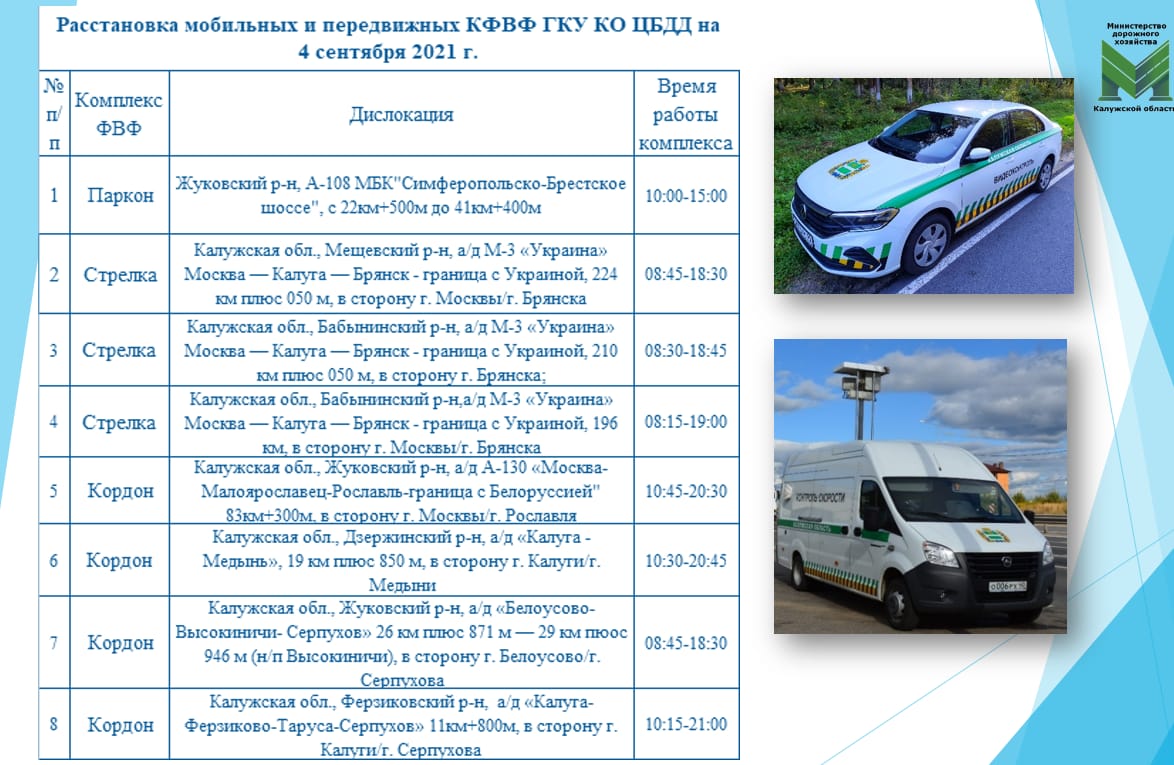 Расстановка мобильных камер на сегодня в Калуге и области.