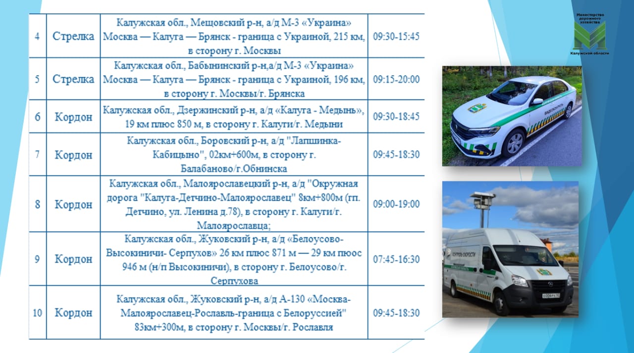 Опубликованы места установки мобильных дорожных камер в Калужской области 9 сентября