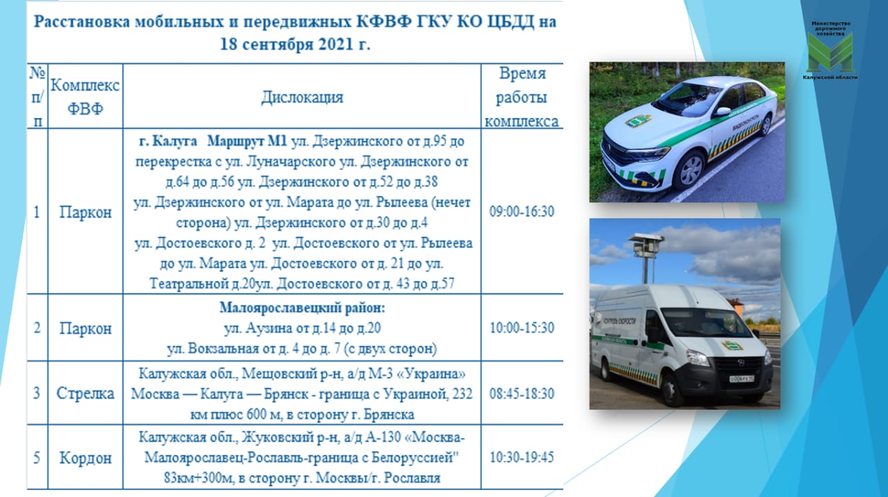 Расстановка мобильных камер на сегодня в Калуге и области.
