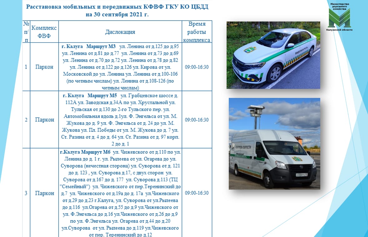 В четверг, 30 сентября, по данным «Центра безопасности дорожного движения», мобильные и передвижные камеры в Калуге можно будет встретить с 9:00 до 16:30.